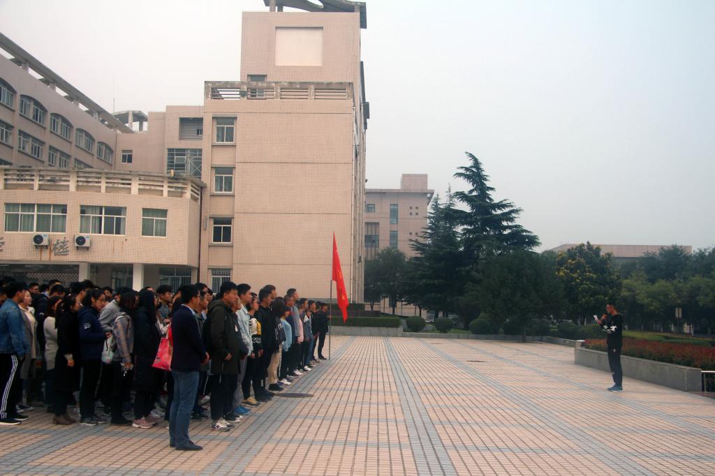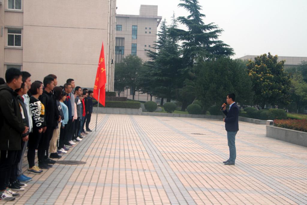 在明德广场举行“时代的责任赋予青年、时代的光荣属于青年”主题升旗仪式。2015级辅导员袁刚、学生第一、第二党支部全体党员、做爱片