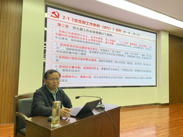 他指出,习近平总书记在党的二十大报告中对“坚定不移全面从严治党、深入推进新时代党的建设新的伟大工程”作出的重要部署,为新时代加强党的建设指明了方向、提供了遵循。党支部是党的基础组织,是党组织开展工作的基本单元,是党的全部工作和战斗力的基础,担负着直接教育党员、管理党员、监督党员和组织群众、宣传群众、凝聚群众、服务群众的职责。《中国共产党支部工作条例(试行)》坚持以习近平新时代中国特色社会主义思想为指导,贯彻党章要求,落实新时代党的建设总要求和新时代党的组织路线,对党支部工作作出全面规范,是我们党历史上第一部关于党支部工作的基础主干法规,为全面加强新时代党支部建设提供了基本遵循。《关于高校党组织“对标争先”建设计划的实施意见》是深入贯彻落实全国高校思想政治工作会议精神,按照新时代党的建设总要求,落实立德树人根本任务,有效提升基层党组织组织力,办好人民满意教育的总体部署和行动指南。