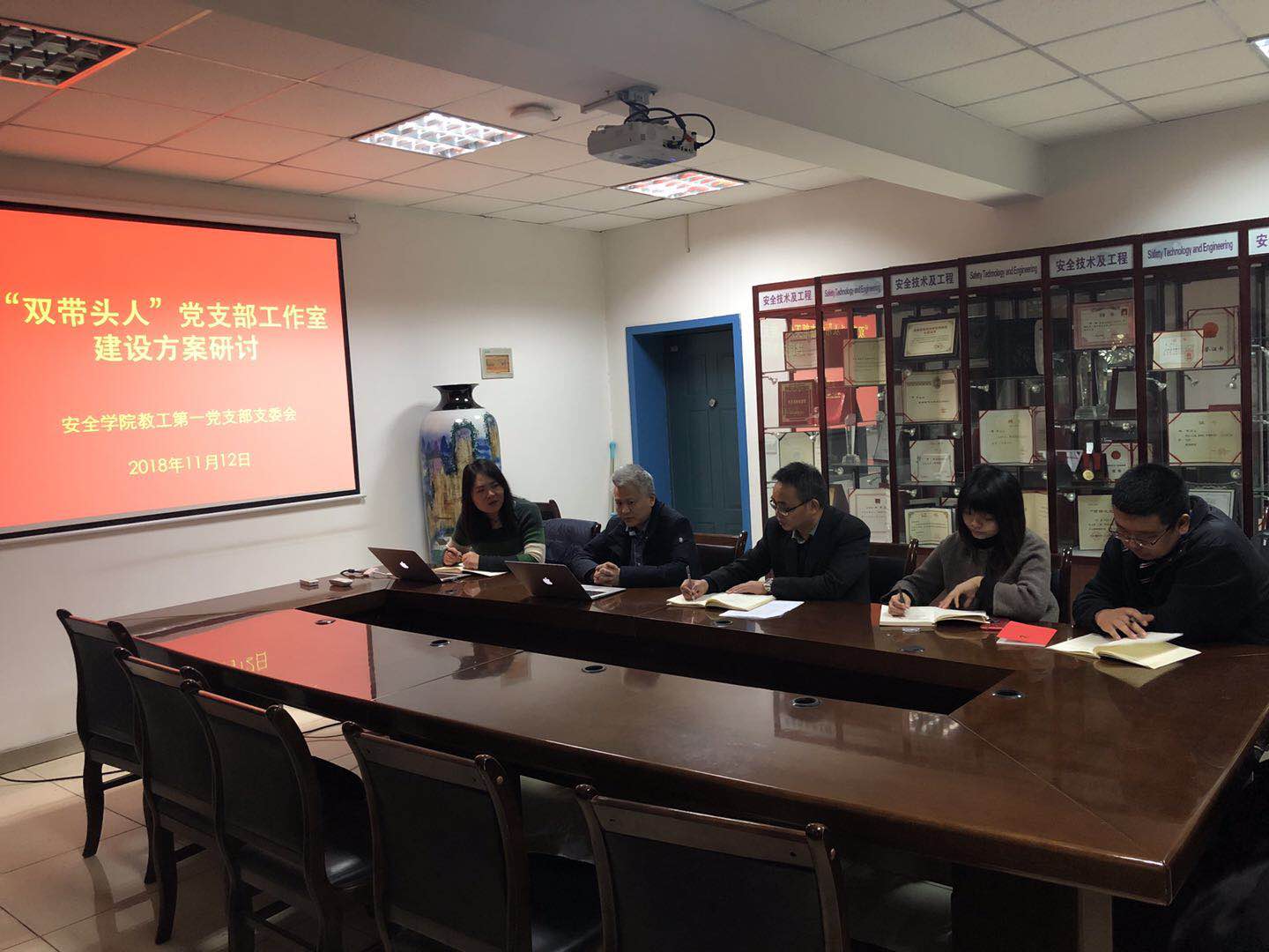 11月12日下午,做爱片 教工第一党支部组织召开“双带头人”党支部工作室建设方案研讨会,支部书记邓军、支部副书记王莉、支部委员李磊、严敏参加了本次会议,会议由院党委书记兼常务副院长杜勇主持。