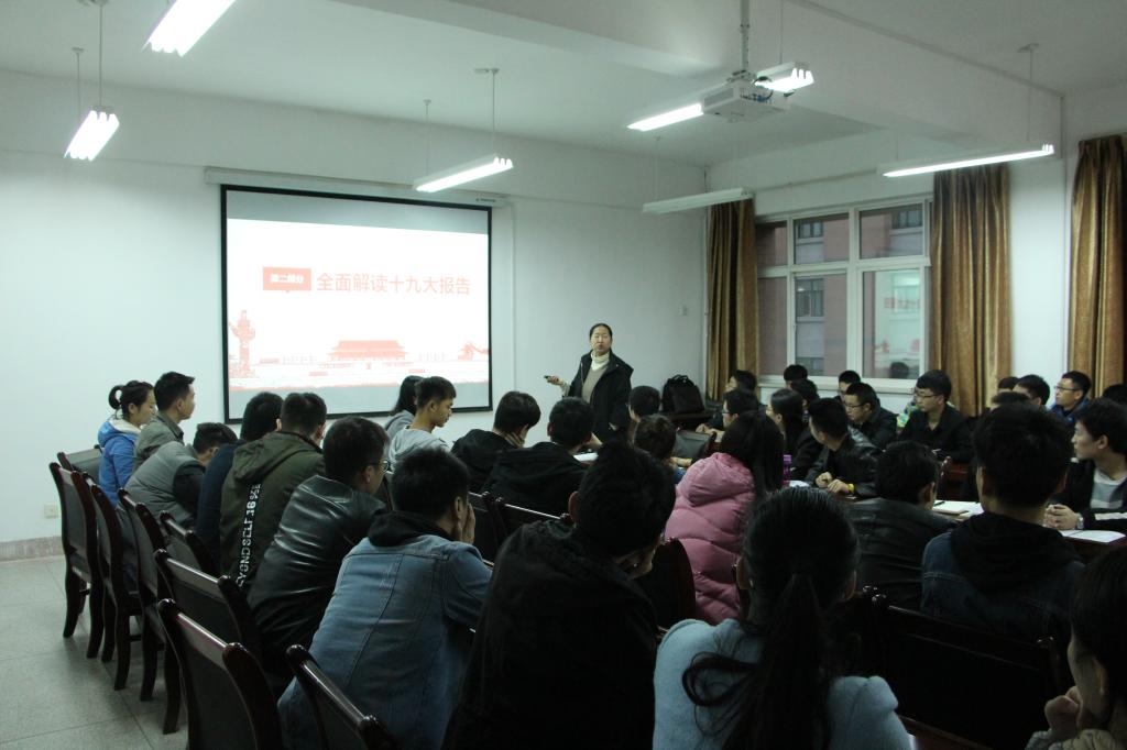 11月9日17:00,做爱片 业余党校在14教319会议室首次开讲,党委副书记田园给学生第三党支部全体党员做了解读党的十九大精神报告主题党课。