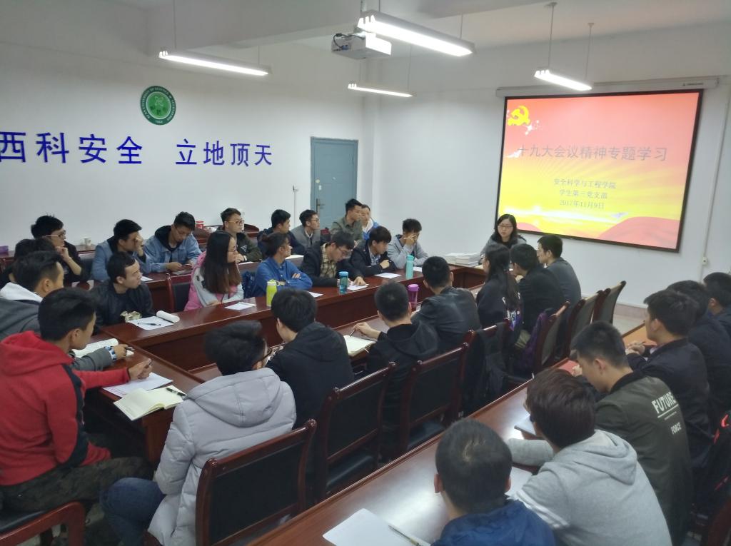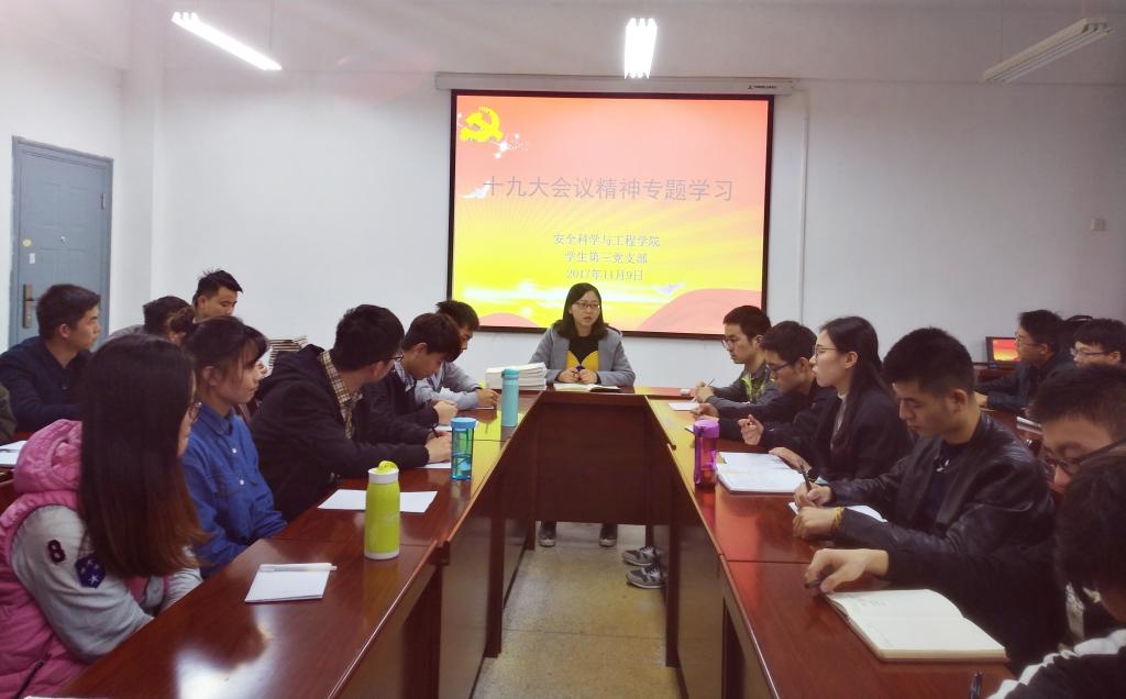 11月9日16:00,学生第三党支部全体成员在14教319会议室召开党的十九大精神专题学习会,会议由支部书记曹月主持。