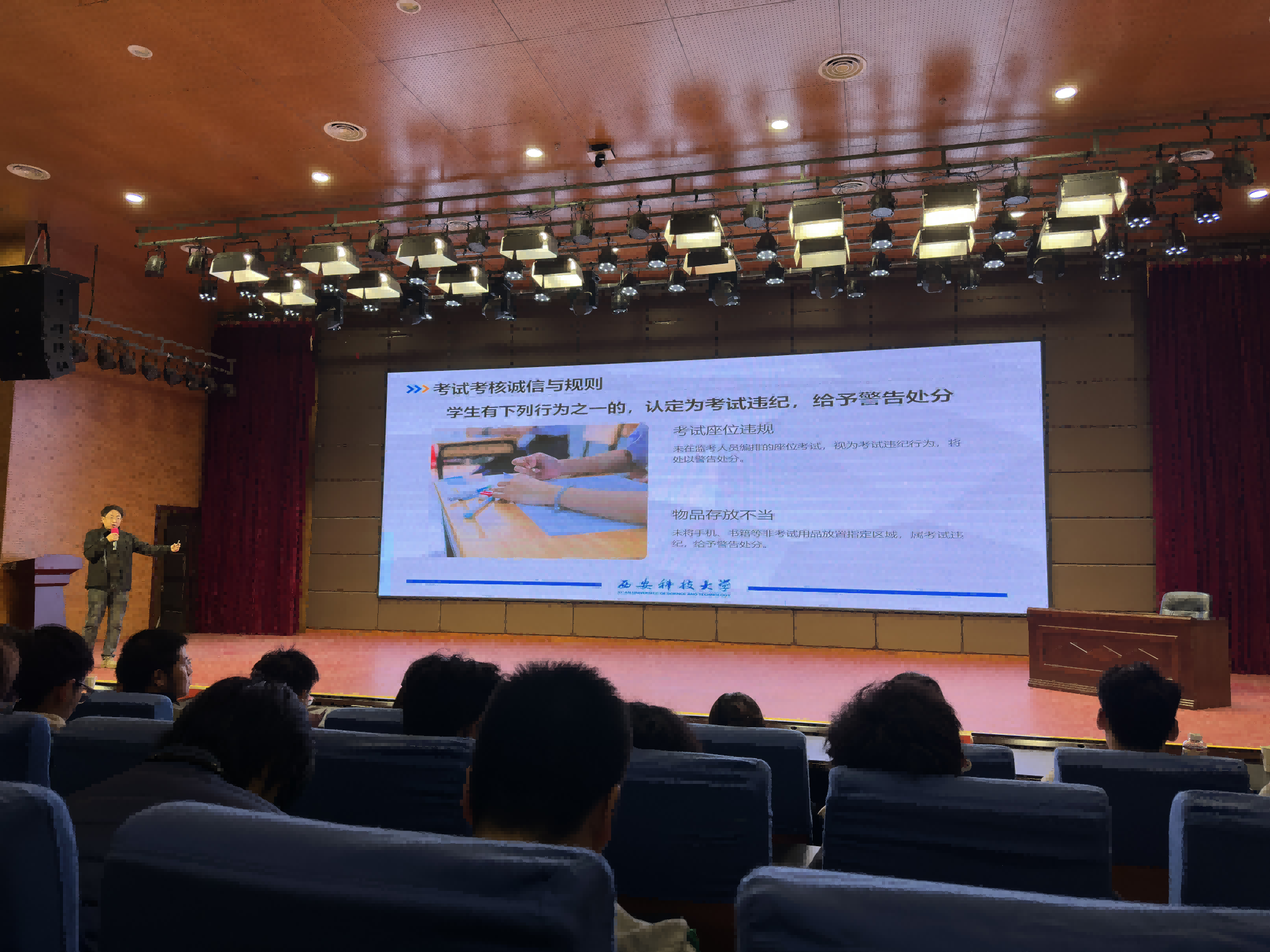 本次宣讲会,进一步增进了同学们对学校规章制度的理解,增强了同学们的诚信考试意识,促进同学们更好地适应大学生活,营造良好的学习、考试氛围。