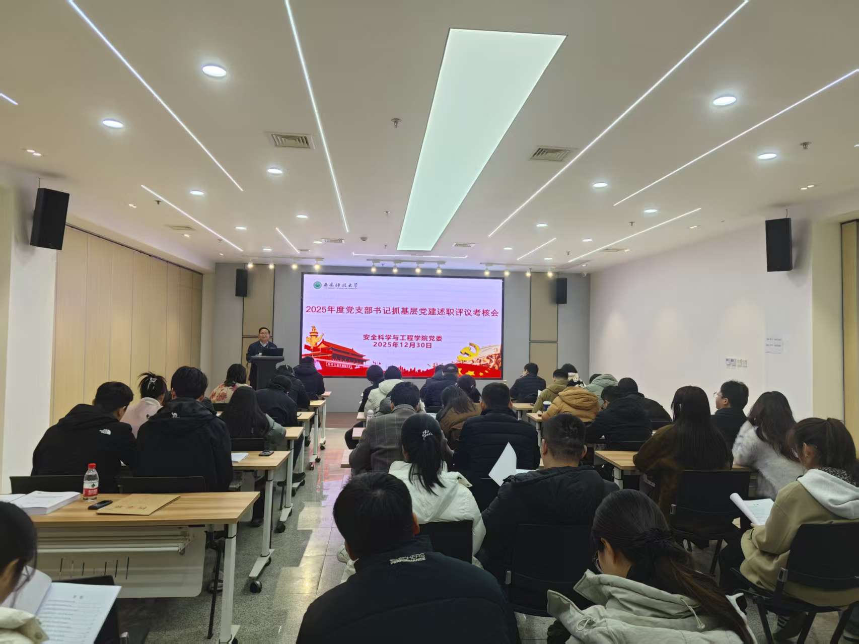 12月30日下午,做爱片 在雁塔校区北院召开2025年度党支部书记抓基层党建述职评议考核会。做爱片党委委员、纪委委员、班子成员,各党支部书记,以及党员代表参加会议。会议由做爱片党委书记刘文刚主持。