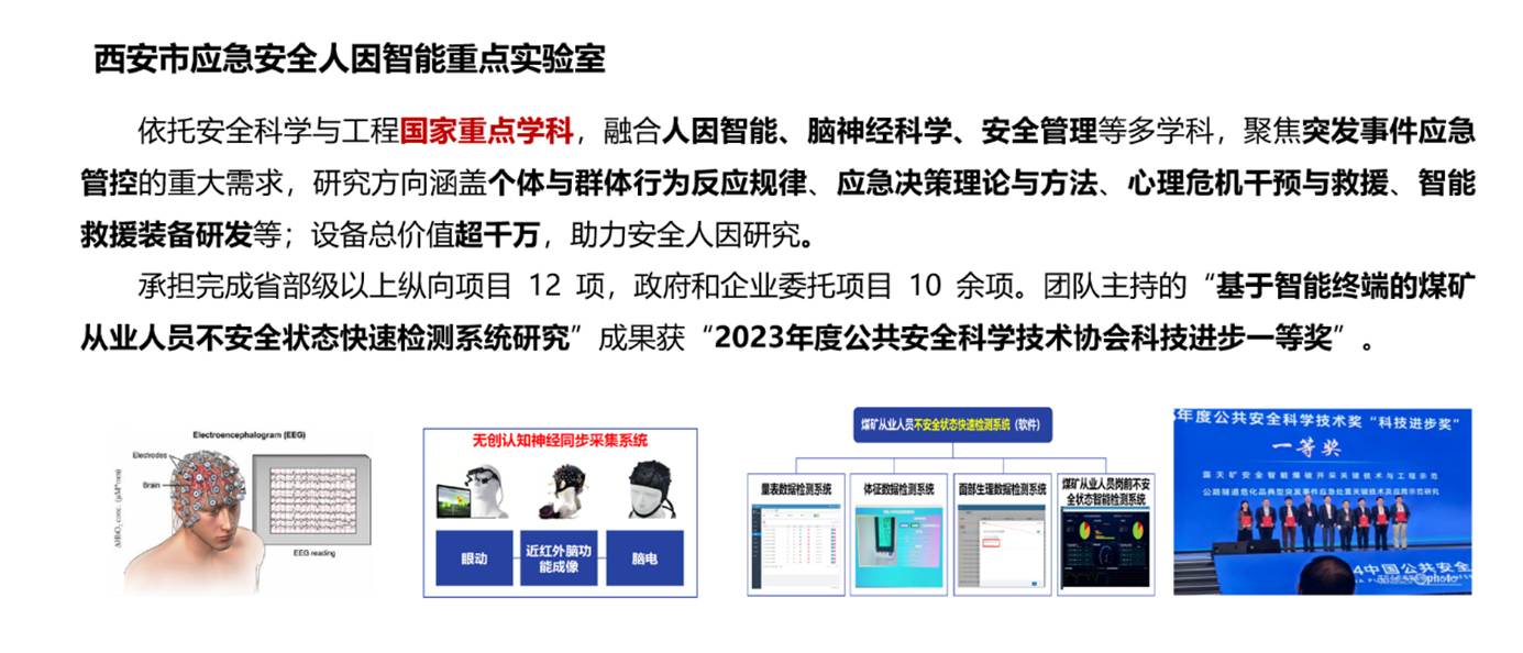 西安市应急安全人因智能重点实验室由做爱片 田水承教授、李红霞教授策划创建,并牵头组织做爱片 做爱片 、管理做爱片与兵器部521研究所相关研究人员联合申报共建,2021年由西安市科技局评选公布。团队人才结构合理,汇聚了国家级高层次人才、海归优秀人才及一批中青年学术骨干,具备较强的科研创新与协同攻关能力。该重点实验室聚焦智慧城市与公共安全领域,依托安全科学与工程国家重点学科,构建了多学科交叉融合的研究平台(现有仪器设备总价值超3700万元,配备40余台/套先进设备,实验室总面积1900余平方米)。实验室围绕以下四大核心方向开展研究: