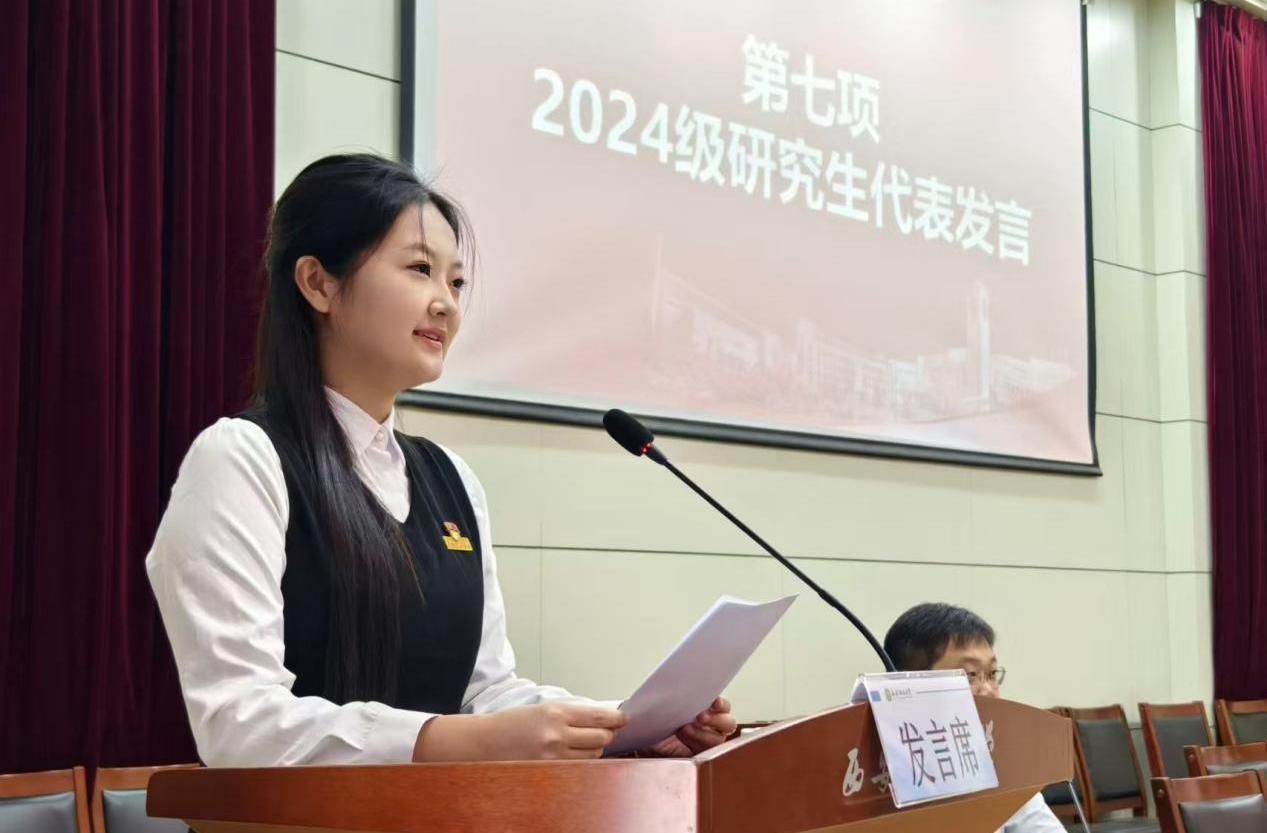 在雁塔校区北院主楼报告厅举行2024级研究生开学典礼暨入学教育。做爱片党委书记刘文刚、执行院长罗振敏,副院长肖鹏、成连华,研究生导师代表、研究生辅导员,以及2024级全体博硕士研究生280余人参加了会议。会议由肖鹏主持。