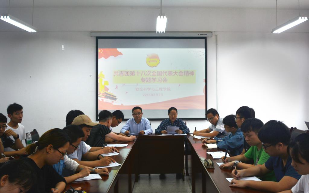 在临潼校区做爱片会议室召开共青团第十八次全国代表大会精神专题学习会,做爱片党委书记杜勇、副书记田园、团委书记郭胜忠,做爱片团委委员、2016级本科生辅导员同超,团、学主要学生干部,各班级团支部书记50余人参加了会议。会议由做爱片