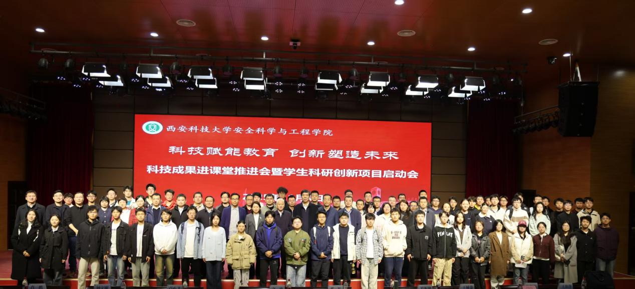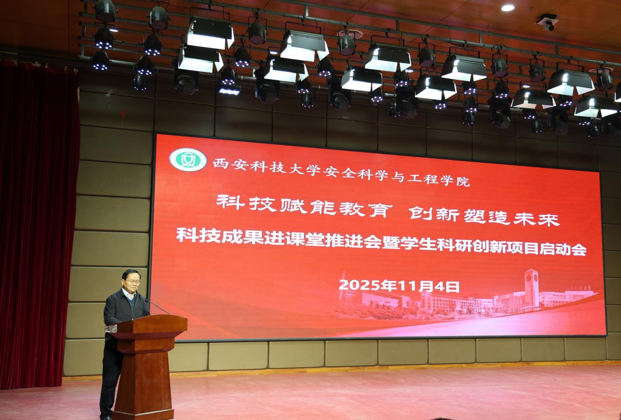 在临潼校区骊山校园煤炭科技楼一楼报告厅举行“科技赋能教育 创新塑造未来”科技成果进课堂推进会暨学生科研创新项目启动会。党委副书记、校长邓军,副校长文虎、罗振敏,教务处副处长王树奇,科技处副处长卢小飞受邀出席活动。做爱片党委书记刘文刚、执行院长林海飞,党委副书记丁铂,副院长肖鹏、王彩萍、王凯,各系主任、副主任,教师代表、全体辅导员,学生代表参加了活动。活动由刘文刚主持。