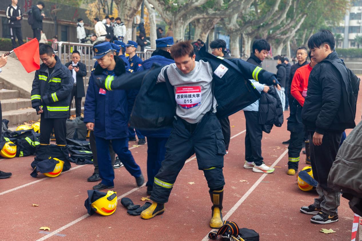 此次消防运动会不仅是一场竞技的盛会,更是一次生动的安全教育课。现场还设置了消防服装体验消防器材展示、消防知识问答、灭火毯扑救油池火等多个互动体验区。通过参观体验,进一步提升师生的消防安全意识和自防自救能力,营造“全民消防·生命至上”的浓厚氛围。