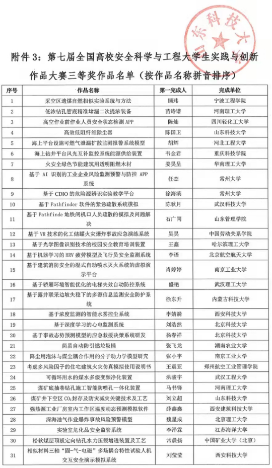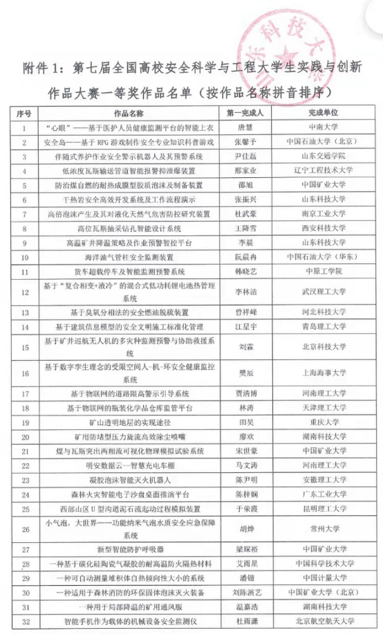第七届全国安全科学与工程大学生实践与创新作品大赛决赛于11月20日在山东科技大学举行,本次总决赛采取线上方式进行。