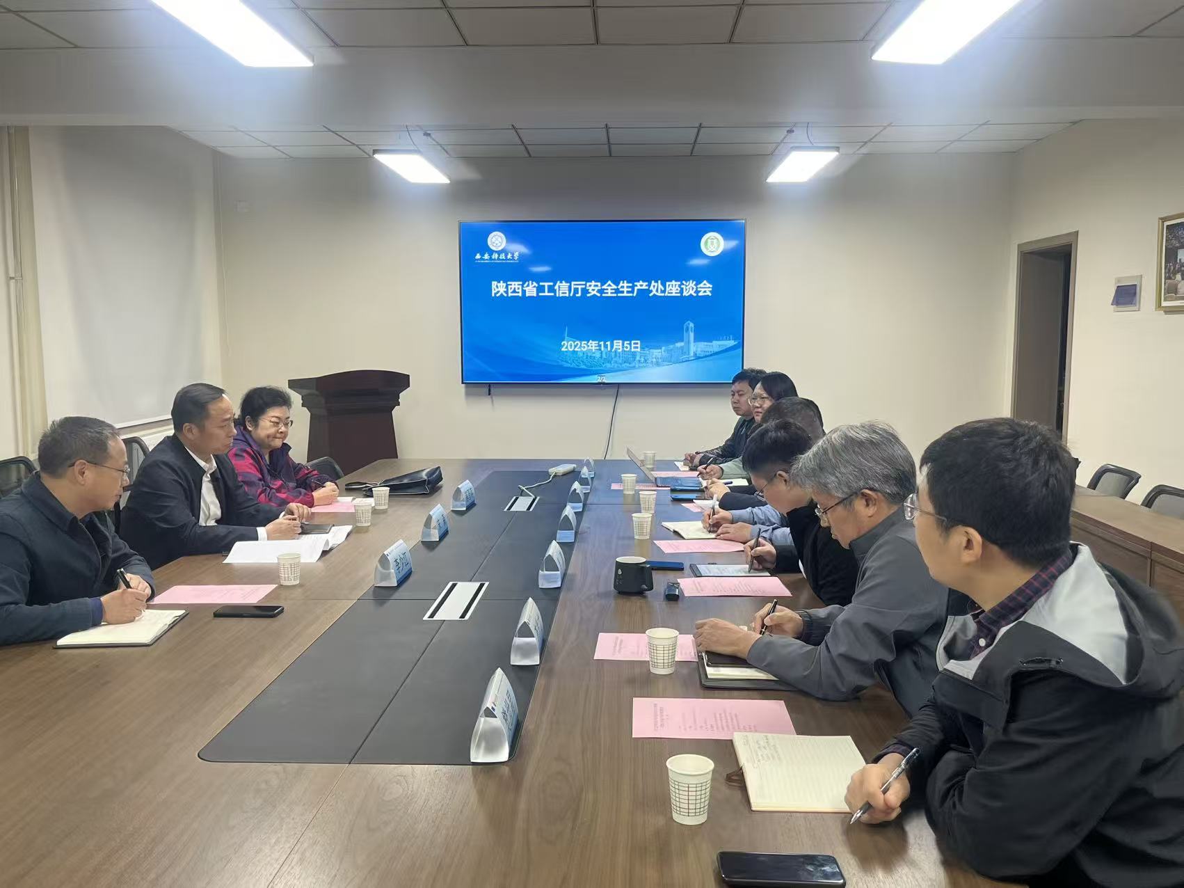 在交流座谈环节,双方围绕安全应急产业政策落地、关键技术攻关、科研成果转化、共建研究院等主题展开深入探讨。大家一致认为,政府部门、产业联盟与高校的深度合作是推动安全应急产业高质量发展的关键抓手,进一步建立常态化沟通协作机制,拓展合作空间,充分发挥高校科研优势、政府引导作用和联盟桥梁纽带作用,形成“政产学研用”协同发力的良好格局,共同为陕西省安全应急产业转型升级、国家安全生产治理能力提升贡献力量。