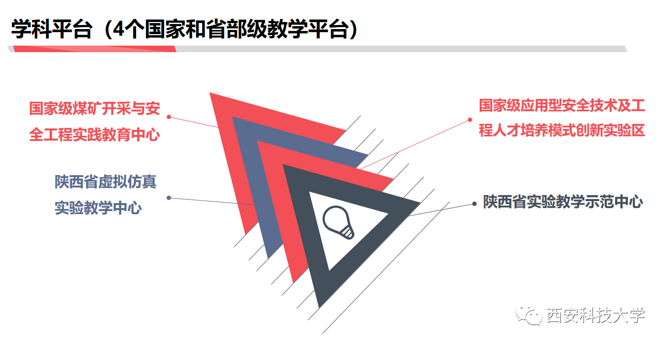 是一所以地矿、安全等相关学科为特色,工科优势突出的省部共建高水平大学。学校是应急管理部与陕西省人民政府共建高校、教育部卓越工程师教育培养计划实施高校、国家建设高水平大学公派研究生项目实施高校、国家特色重点学科项目实施高校、国家中西部高校基础能力建设工程实施高校、陕西省高水平大学建设高校、陕西省“一流大学、一流学科”建设高校。