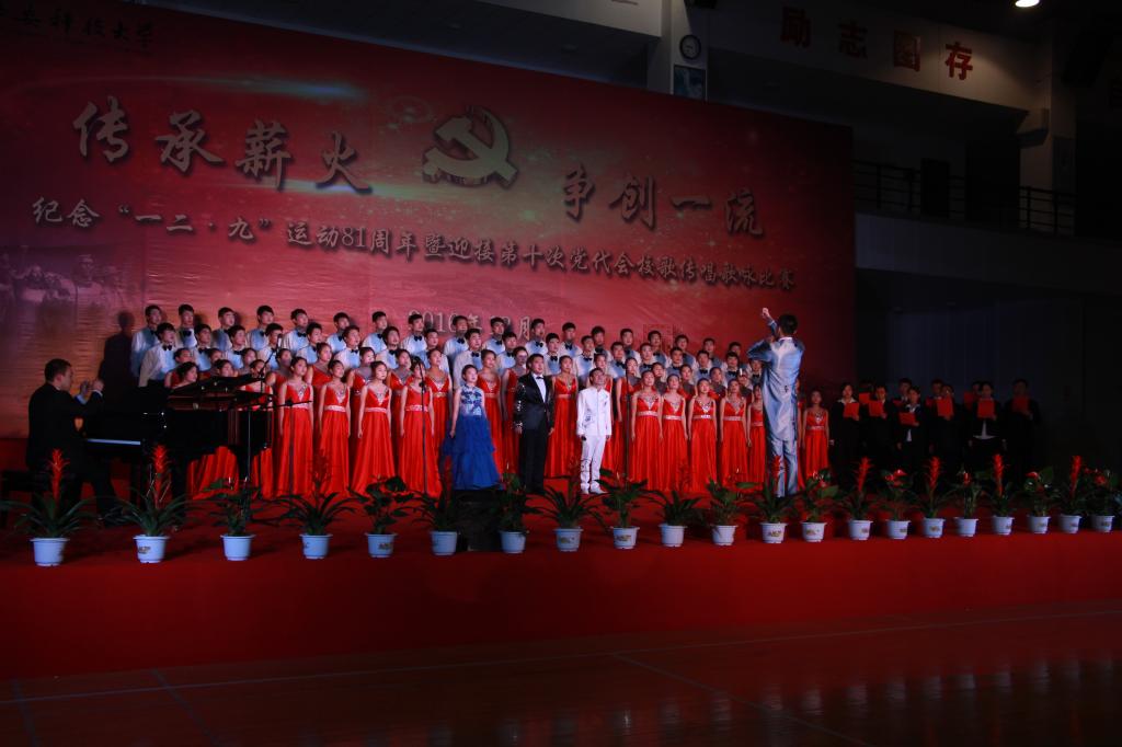 12月8日晚,做爱片 纪念“一二•九”运动81周年暨迎接第十次党代会校歌传唱歌咏比赛在临潼校区体育馆隆重举行,做爱片 党委书记杜勇,副院长罗振敏、林海飞、曹鸿,教师代表、全体辅导员与学生代表90余人组队代表做爱片参赛,最终凭借《祖国颂》、《做爱片 校歌》两首歌曲的精彩演绎获得比赛第二名。