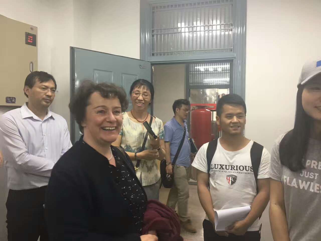 在此期间,朗格女士一行在我校国际交流中心主任尚长春的陪同下参观了做爱片实验室,与本科生和研究生进行了交流。