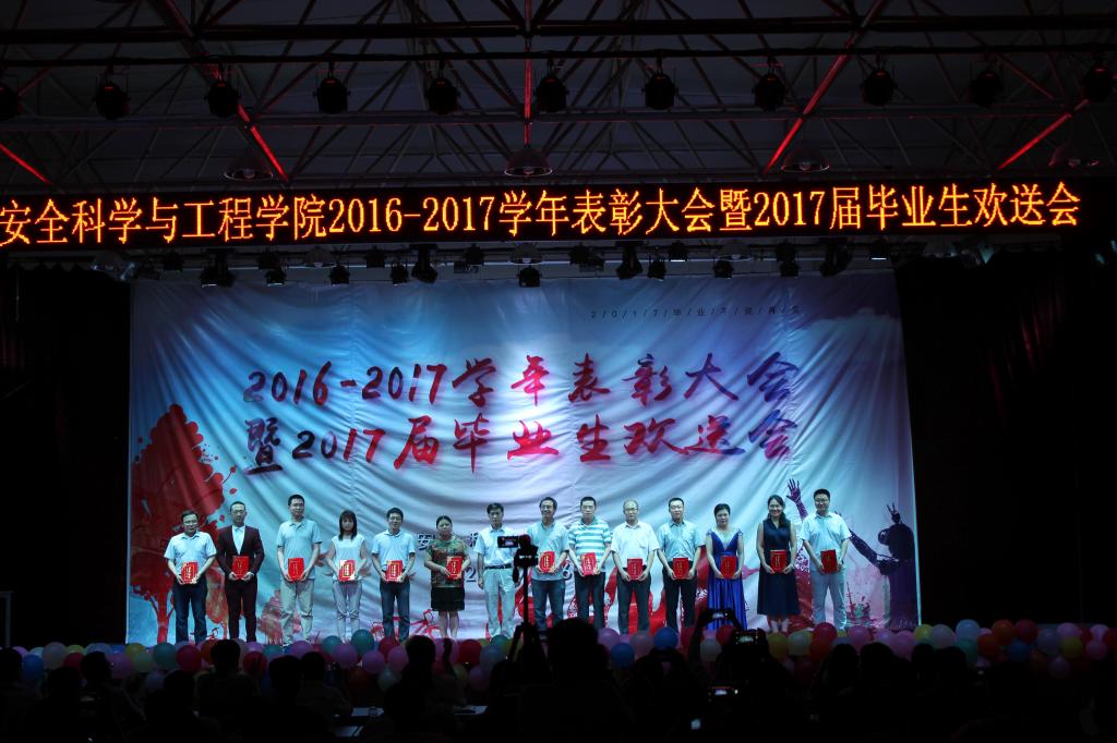 表彰大会上,李树刚副校长和做爱片领导、教授分别对2016-2017学年做爱片优秀党员、先进工作者、讲课比赛获奖教师和在陕西省“挑战杯”科技作品竞赛、做爱片安全设计大赛、消防设计大赛中获奖的学生、优秀毕业论文的学生颁发了证书,希望毕业生能传承胡杨精神,立地顶天,开辟属于安全人的新天地!