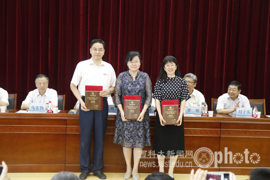 会上,副校长马宏伟宣读了《关于印发首届“胡杨人才工程”入选人员的通知》和《关于公布首届“菁英人才工程”入选人员的通知》,首届“胡杨人才工程”特聘教授代表邓军、李红霞、郑斌分别发表了入选感言,校领导为“胡杨人才工程”和“菁英人才工程”入选者颁发了聘书。