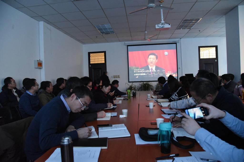 这次学习会议,采取观看视频和交流发言的方式进行。会上首先组织观看了七集电视政论纪录片“不忘初心,继续前进“的微视频、习近平总书记在中央政治局第一次集体学习和在学习贯彻党的十九大精神研讨班开班式时的重要讲话精神。随后,程文东、罗振敏、马砺、成连华、王亚超、陈婷、赵婧昱和同超等8位同志就深刻领会和贯彻落实党的十九大精神交流了心得体会。