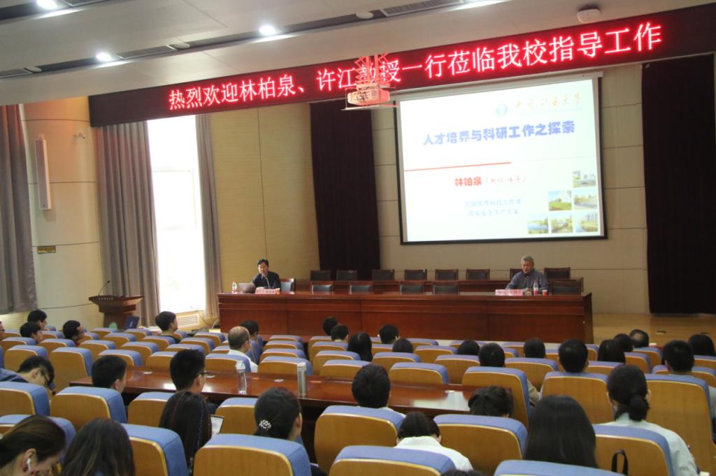 邀请做客我校“胡杨林大讲堂”,林柏泉教授和许江教授在雁塔校区主楼报告厅分别作了题为《人才培养与科研工作之探索》和《基于综合作用假说的多功能煤矿瓦斯动力致灾物理模拟试验系统》的学术报告,报告会由做爱片常务副院长邓军教授主持,学校部分老师及研究生百余人聆听了报告。