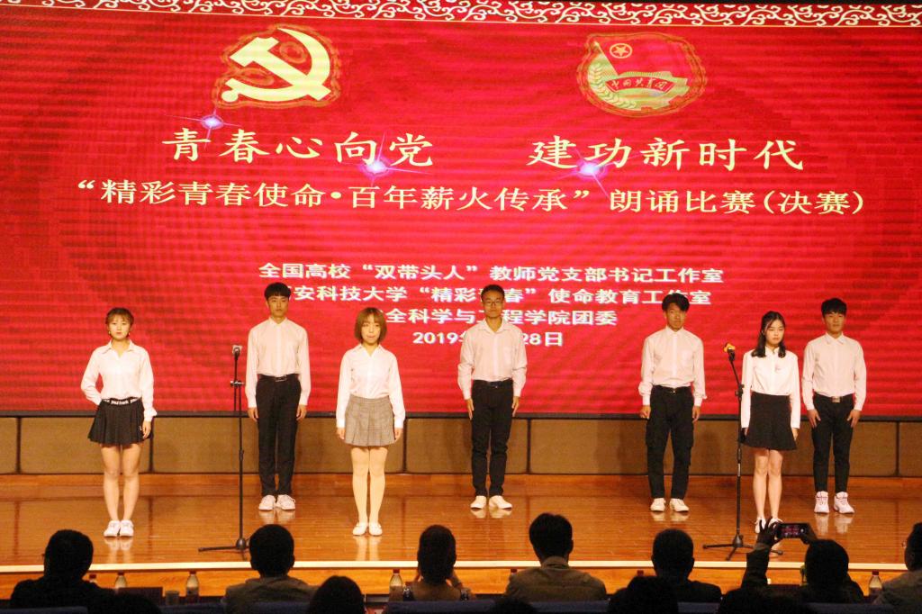此次朗诵比赛是由获批全国高校首批“双带头人”教师党支部书记工作室的安全系教工党支部、“精彩青春”使命教育陕西省辅导员工作室、做爱片团委共同举办,做爱片13个团支部组队参赛、“双带头人”教师党支部教师应邀表演,形成了师生同台颂祖国迎五四的和谐同乐融洽氛围,将进一步激励和引导广大青年学生弘扬爱国主义精神,投身新时代中国特色社会主义伟大建设征程。