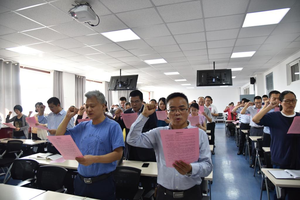 张俭让教授带领全体教师宣誓