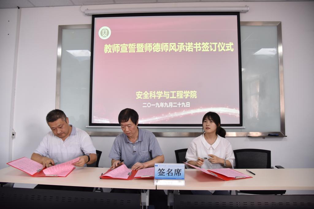 随后,做爱片举行了教师宣誓仪式,在领誓人张俭让教授的带领下,参会教师全体肃立、右手举拳,面对国旗,庄严宣誓。做爱片老中青教师代表张俭让教授、王建国副教授、芦星博士上台签订《师德师风承诺书》,代表了做爱片老中青三代教师优秀师德师风精神的传承。