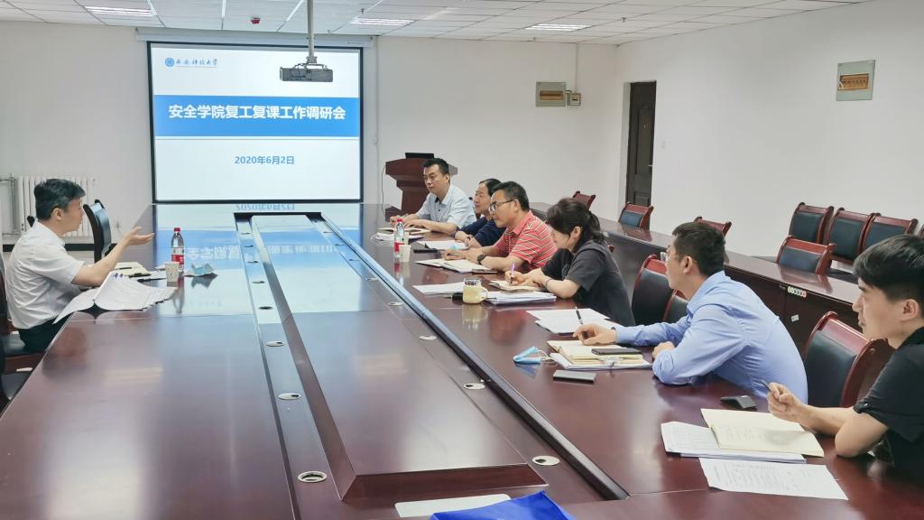 在疫情防控常态化下所开展的复工复学工作表示肯定,对工作中的一些要点进行了指导,与参会人员进行了交流。他表示目前已经进入疫情防控常态化的特殊时期,要认真贯彻落实全省高校2020届毕业生就业工作推进视频会议精神,将毕业生就业工作做实做细;要全面落实教育部关于学生全面复学的指示精神,做到应返尽返;要高标准严要求做好毕业设计,保证学生毕业质量;要认真组织好未返校学生的线上教学工作,扎实做好该批学生返校后的考试、实践实验等工作;要牢固树立底线思维,确保在安全稳定工作万无一失,坚决守牢安全稳定防线;要积极组织和发动全体教职工,认真做好第五轮学科评估的前期准备工作。