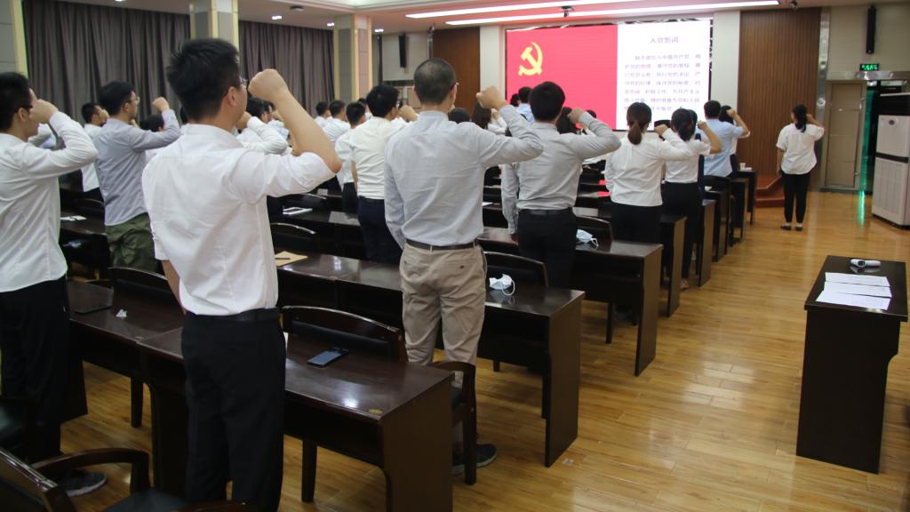 罗振敏副院长带领与会全体党员面对鲜艳的党旗,举起右拳,庄严宣誓。坚定有力的誓言,使每一位与会党员再一次接受了深刻的党性教育和灵魂洗礼。