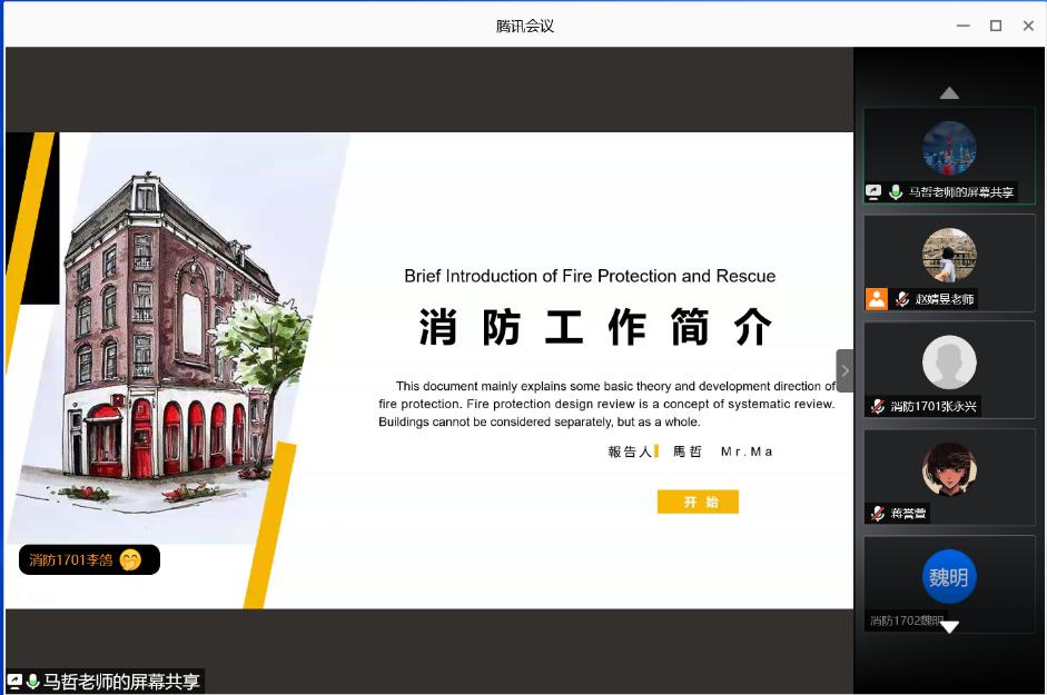马哲结合自身长期从事消防管理工作的经验,通过实例解析,就消防业务基础、消防设计审图思路、消防业务发展方向、消防验收常见问题进行了详细的讲解。让学生身历其境,感受到消防工作的重要性。本次讲座内容丰富,气氛热烈,与会同学积极提问,与马哲老师进行了广泛而深入的互动,达到了预期目的。