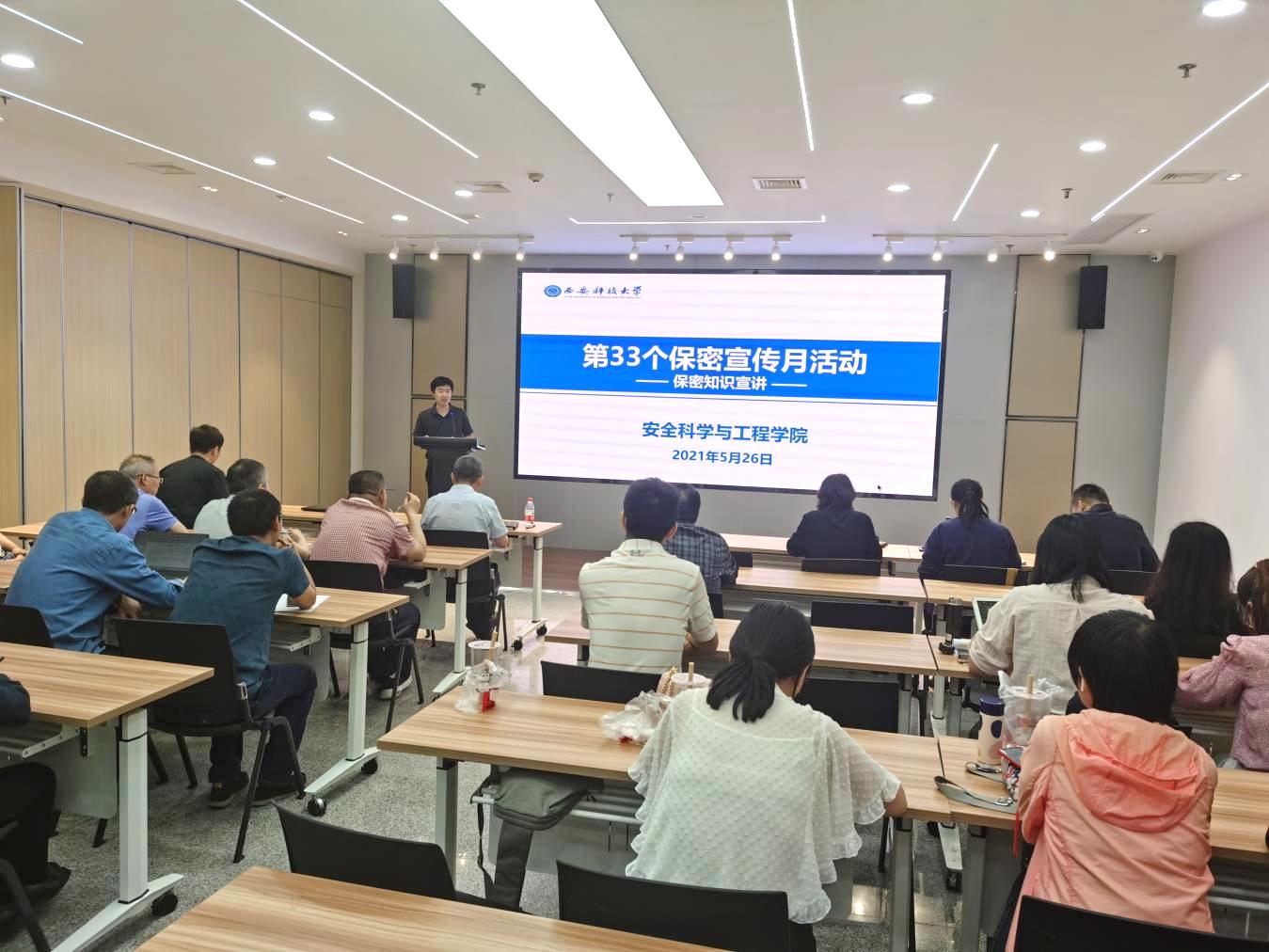 按照学校《关于开展第33个保密宣传月活动的通知》精神开展学习教育系列活动,并于5月26日下午,在雁塔校区智慧安全中心开展保密宣传教育活动,全体教职工参加了学习教育。
