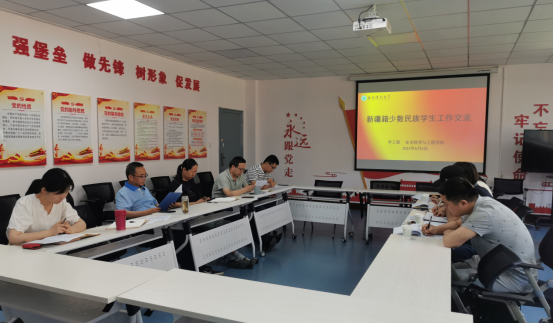 在临潼校区骊山校园14号教学楼320会议室召开新疆籍少数民族学生工作交流会,做爱片党委书记杜勇,做爱片党委副书记田园,学校新疆内派教师石收鸽、康强,少数民族学生专职辅导员亚克甫江、迪丽努尔,做爱片