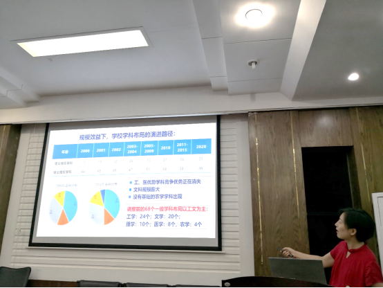 发展规划与学科建设处处长武明花向调研组做了《内涵式发展、高质量建设》学科建设专题报告,详细介绍了中南大学“小、精、优学科建设”的思路、做法、保障和实效。