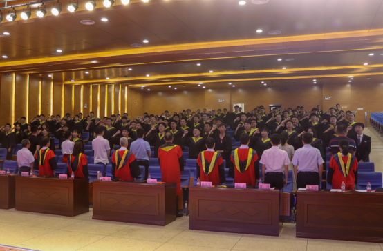 最后,全体毕业生在参会教师的见证下庄严宣誓,在“不畏艰难险阻,勇担时代使命;立志成为西科骄傲、祖国栋梁”的宣誓声中,展现出了安全学子的责任与担当。