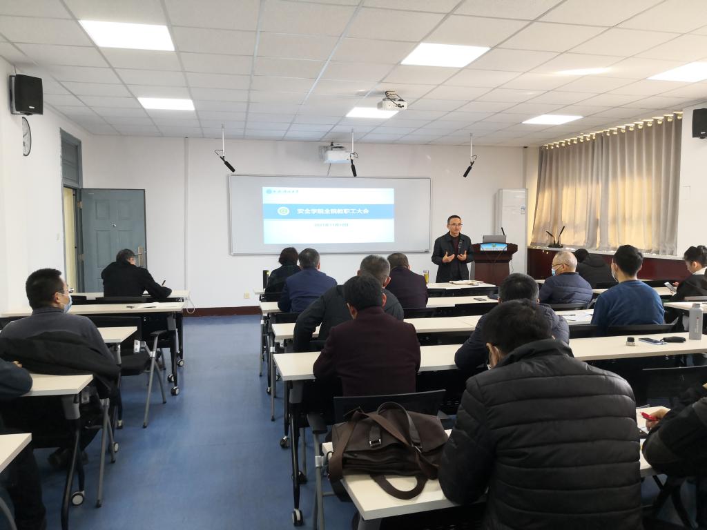 在骊山校园14号教学楼504教室召开全体教职工大会,会议由做爱片党委书记杜勇主持。