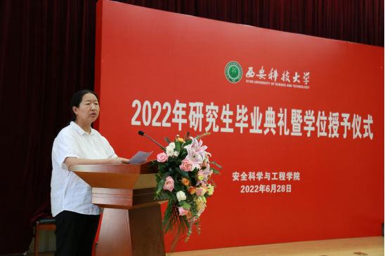 执行院长罗振敏教授发表了院长寄语。她对全体毕业生对西科安全的信任和作出的贡献表示感谢!对全体学生的坚持和拼搏表示感谢!希望全体毕业生继续秉承西科安全精神,用研究生阶段培养的学习、创新、创造能力迎接新的挑战,用顽强拼搏、乐观豁达的心态面对困难和挫折,把握工作,享受生活,担负起对父母、对家庭、对社会的责任。