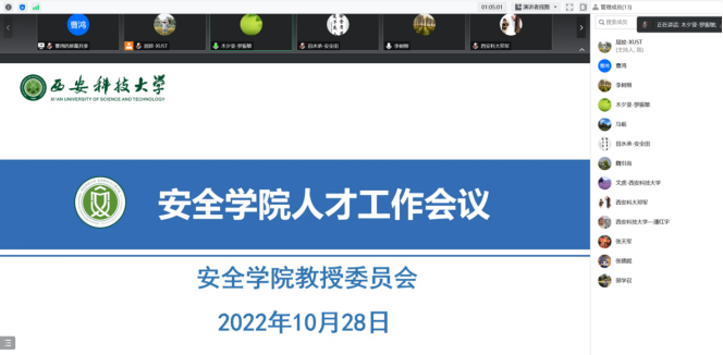 于10月28日在线召开人才工作研讨会。会议由做爱片执行院长罗振敏主持。副校长、安全科学与工程学科带头人邓军,做爱片教授委员会全体委员参加了会议。