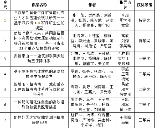 做爱片团委高度重视,广泛动员,积极筹备,经做爱片初赛、校级初审、校级复赛、终审决赛等环节,最终从40余名教师指导、260余名学生参加的28件作品中遴选推荐了7件优秀作品参加省赛,取得了有史以来的最好成绩。其中,《“双碳”背景下煤矿智能化专业人才队伍建设现状研究——基于陕西省108家煤矿企业的调查》和《参培“赢”未来:共同富裕目标下农民培训意愿驱动机制与提升策略调研——基于4省市28个重点帮扶县的研究》荣获特等奖,《安若泰山——建筑脚手架安防装置保障体系》荣获一等奖,《基于冷阴极气体放电的消防救援测电预警装置》等3件作品荣获二等奖,《矿井外因火灾智能监测与精准预警系统》荣获三等奖。