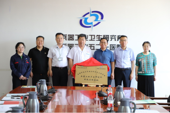 党委书记刘文刚、副院长成连华、安全工程系副主任易欣一行到兵器工业卫生研究所举行“人才联合培养基地” 及 “科教实践基地”揭牌仪式。揭牌仪式由董国强主持。兵器工业卫生研究所科技委主任郭永明、职业安全与健康中心主任董国强、职业安全卫生管理处副处长梁馨月、职业安全与健康中心副主任刘亚杰、相关技术人员参加会议。