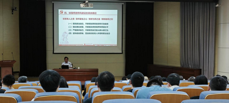 在雁塔校区北院主楼报告厅举办师德集中学习教育专题辅导报告。做爱片