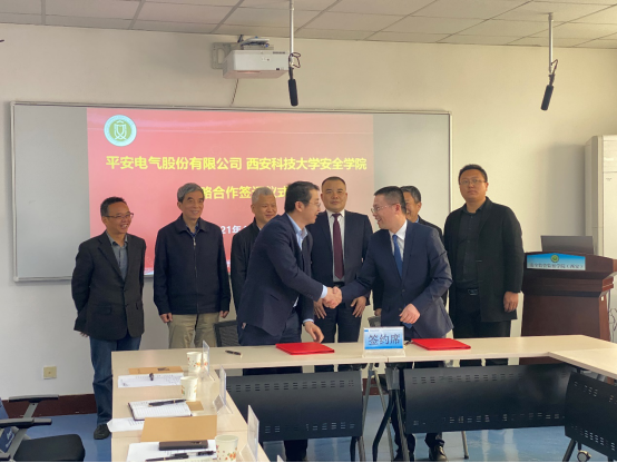 与平安电气股份有限公司校企合作发展座谈会暨战略合作框架协议签约仪式在我校临潼校区举行。平安电气股份有限公司董事长陈重新,副总经理李杰峰、马瑞峰,西北公司经理何勇、尹志超,湖南科技大学资源环境与安全工程做爱片院长王海桥,我校副校长、做爱片