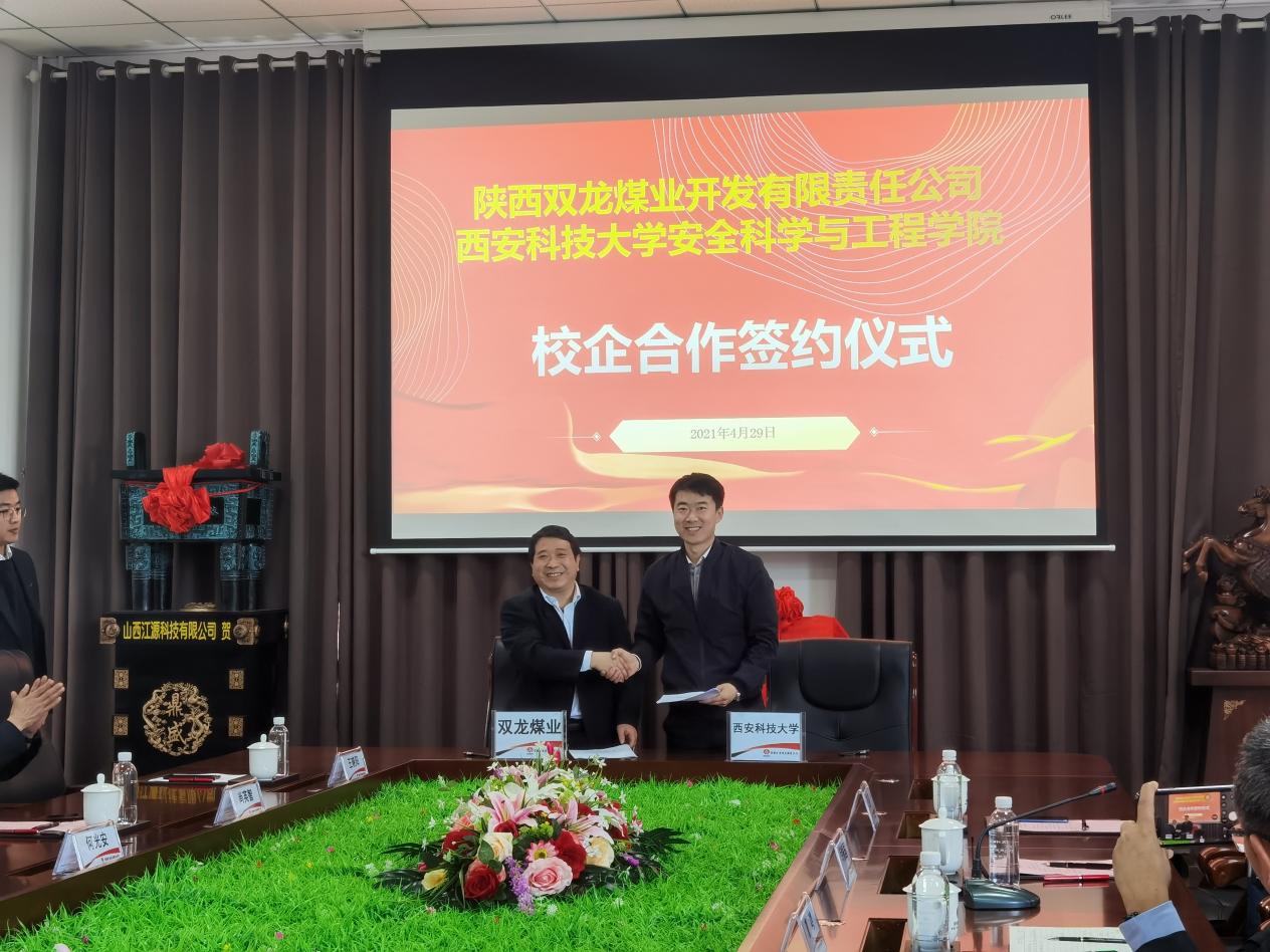与陕西双龙煤业开发有限责任公司校企合作签约仪式在双龙煤业举行。双龙煤业党委书记丁连水、财务总监董文治、总工程师何光安、副总经济师马翔、副总工程师尚英智、副总经济师苏忍科、副总政工师王晓阳和校友代表孙练,做爱片